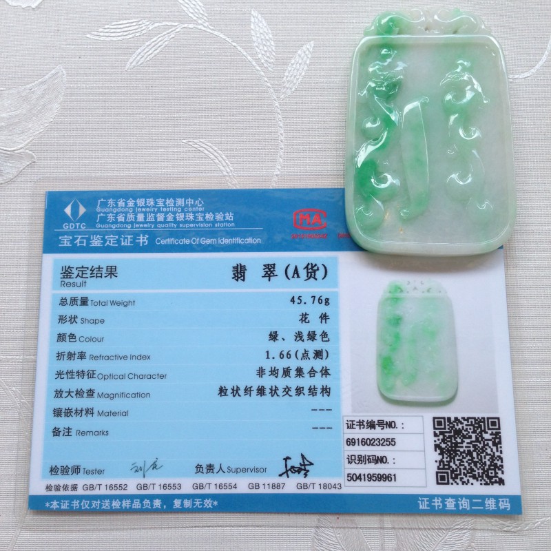 【鉴定证书】本品为天然缅甸A货翡翠,成交时出具省级检测证书,欢迎到任何权威珠宝检测机构复检
