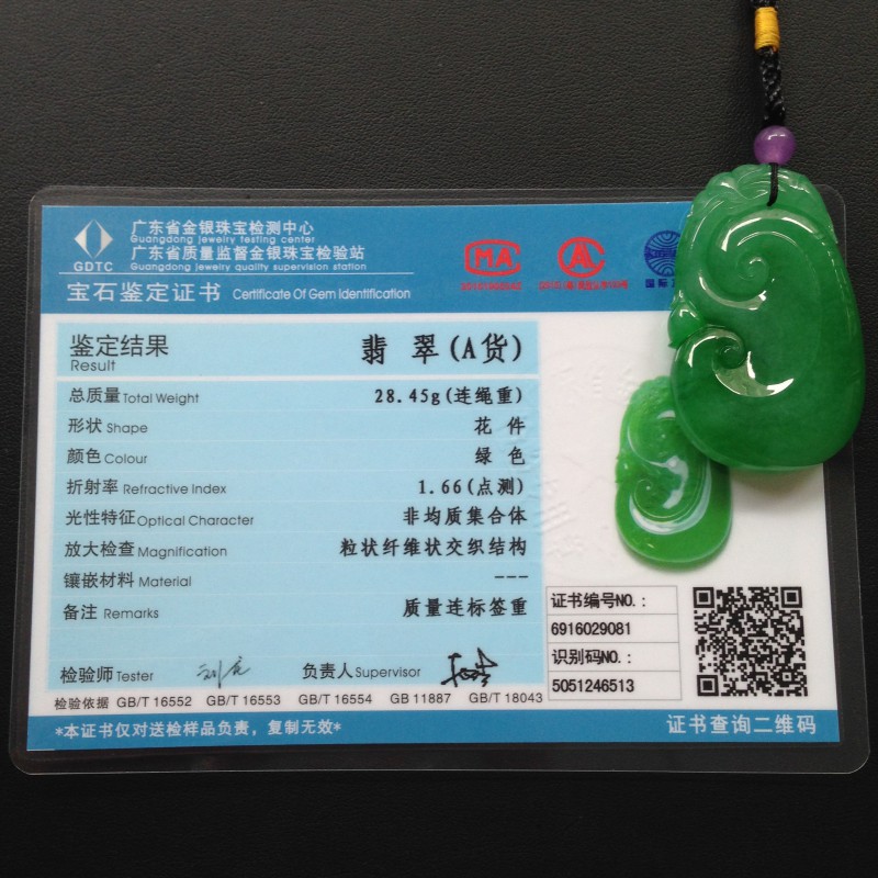 【随单配件】珠宝盒、省级机构A货检测证书、挂件另赠精美挂绳。