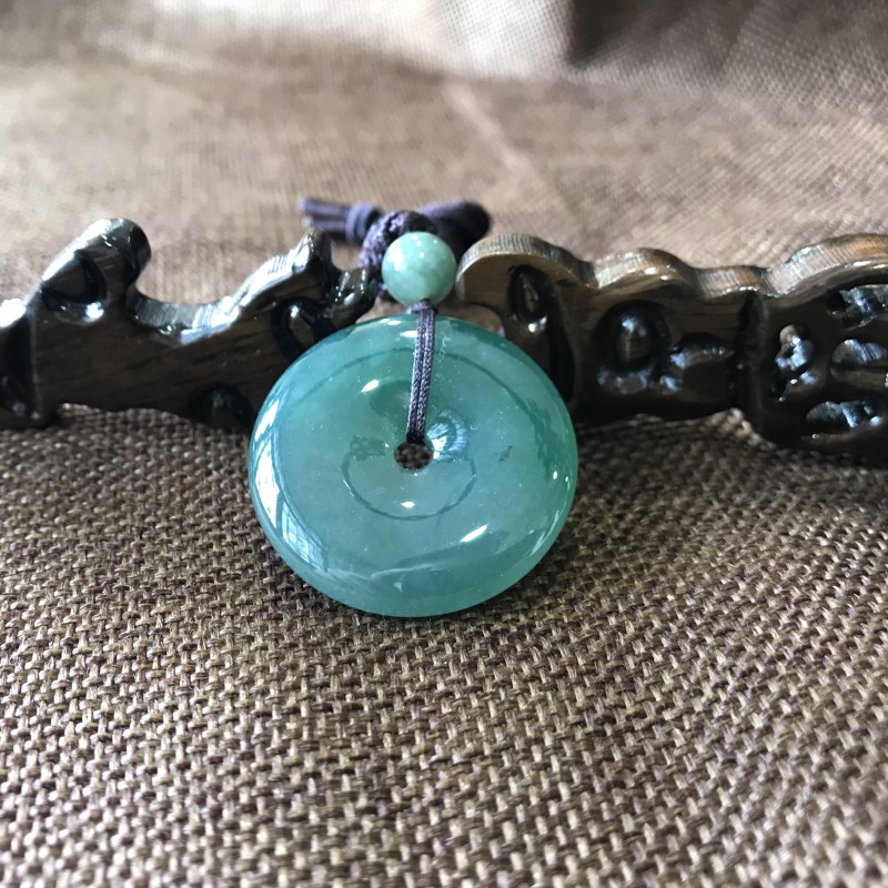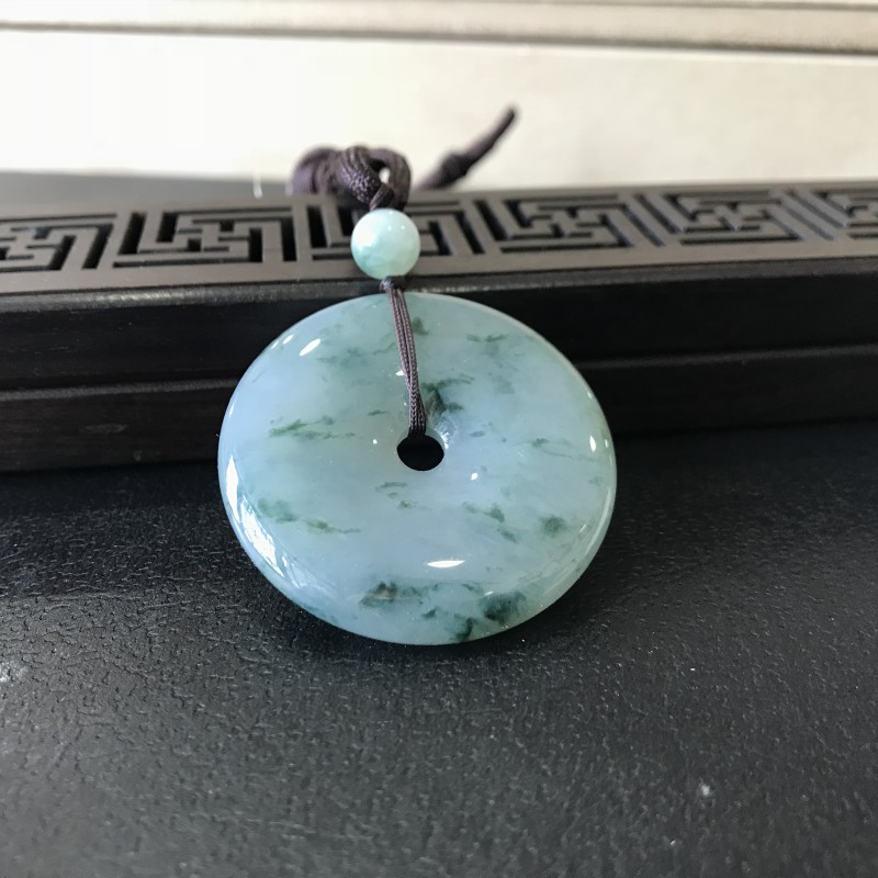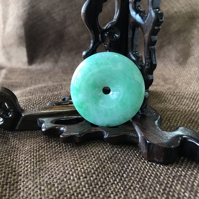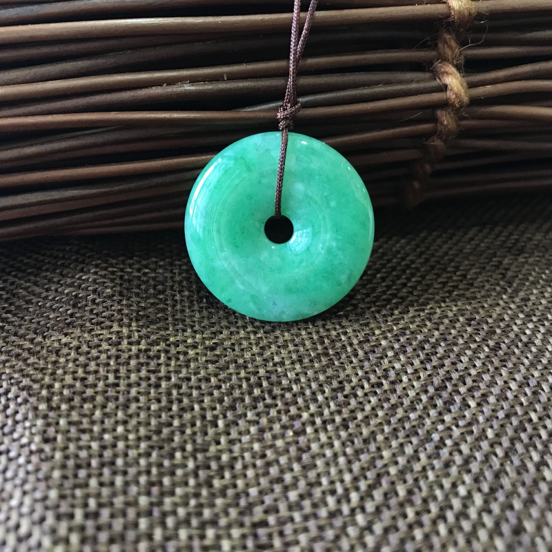 翡翠平安扣简简单单,平平淡淡,没有太多的掩饰和繁复,特别适合女性的气质,加上翡翠温润凝重,含蓄低调的特点也可以到处女性的柔美气息。
